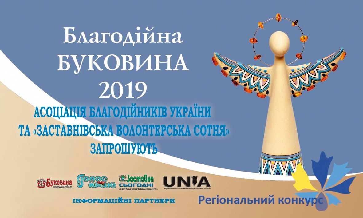 Асоціація благодійників України та Заставнівська волонтерська сотня запрошують доброчинців, меценатів, волонтерів Чернівецької області номінуватися або номінувати своїх колег на участь в Національному конкурсі «Благодійна Україна». У конкурсі можуть брати участь благодійники, які надавали благодійну допомогу для вирішення актуальних суспільних проблем у період з 1 січня по 31 грудня 2019 року; благодійні проекти (ініціативи), реалізація яких (повністю або окремого етапу) була здійснена у зазначений період; суспільні інституції, які у цей період провадили діяльність, спрямовану на розвиток і підтримку благодійності в Україні, благоотримувачі, представники медіа.
