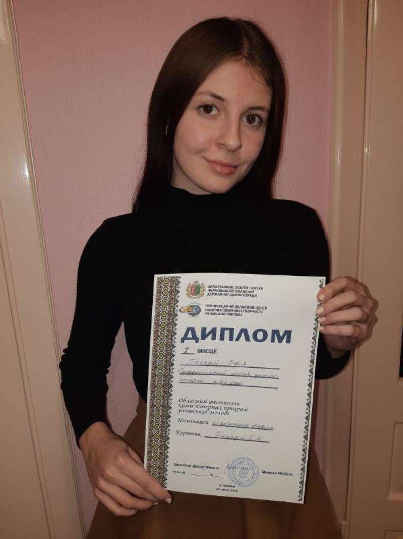 Від Сторожинецької ОТГ у конкурсі взяла участь вихованка Сторожинецького ЦДЮТ та учениця 10 класу Опорного закладу Сторожинецький ліцей Паладій Софія, яка зайняла І місце у номінації «Графічний дизайн».