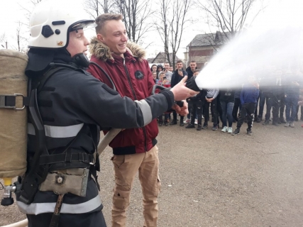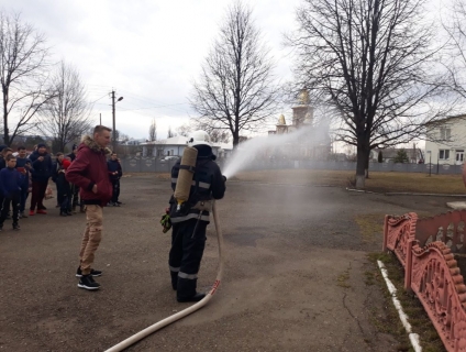 Після відпрацювання порядку дій пожежники показали школярам роботу обладнання та спецтехніки.