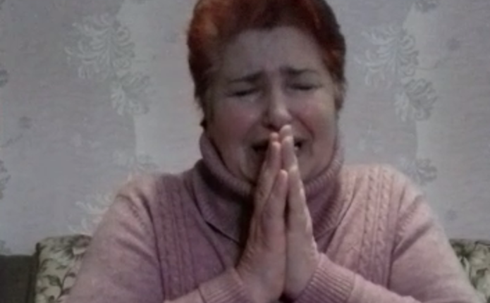 І скаржиться, що вдома немає овочів і хліба, доїдають макарони, тому що бояться вийти на вулицю, побоюючись гніву сусідів. Також жінка стала на коліна і просила, щоб залишили в спокої її родину.