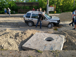 У Чернівцях водій позашляховика зніс загороджувальний блок на ділянці, де проводяться ремонтні роботи.