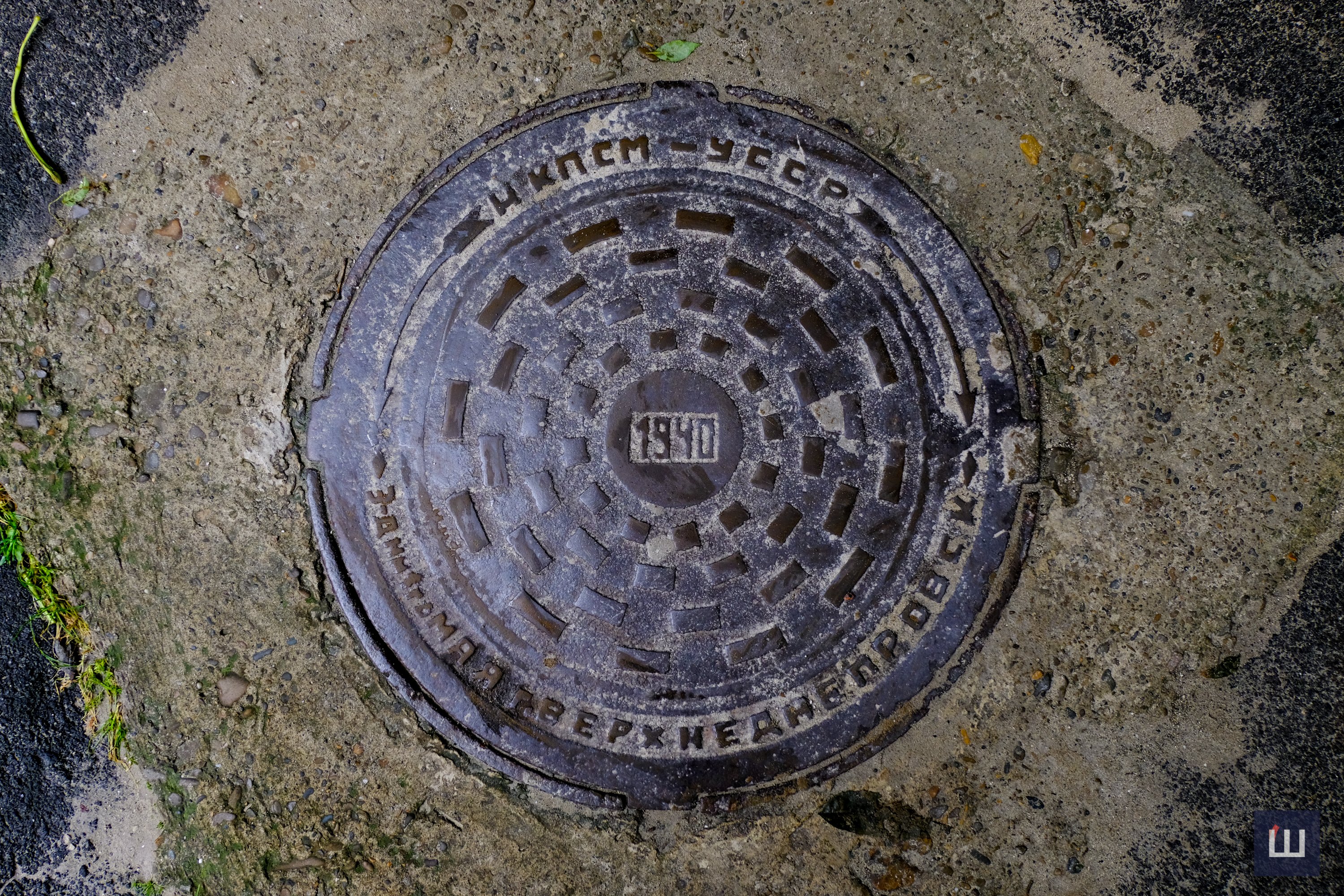 «Круглий радянський люк 1940 року, таких у Чернівцях бачив усього декілька: на вулиці Маяковського і два — у підвалі корпусу педколеджу на вулиці Богуна. Неподалік пластмасові люки: естетики вони не мають, крім того, в спеку змінюють форму».