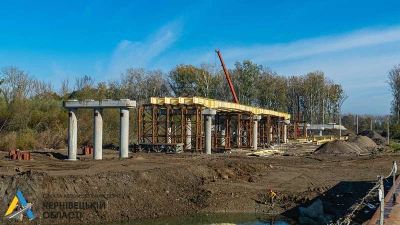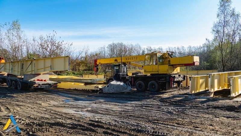 Роботи зосереджено на спорудженні основних балок прогонової будови мосту