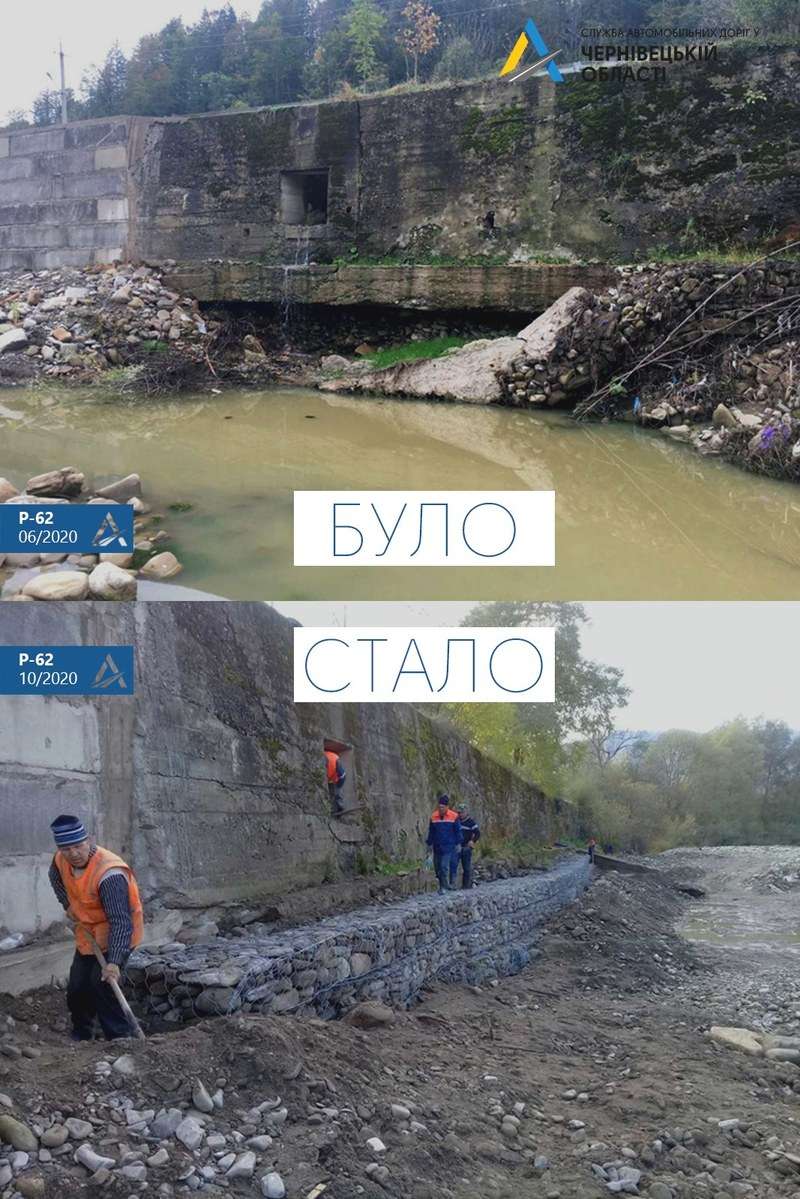 Працівники філії «Вижницького автодору» ДП «Чернівецький облавтодор» на замовлення Служби автомобільних доріг ліквідували розмив земляного полотна. Влаштували підпірну стінку з габіонних конструкцій.