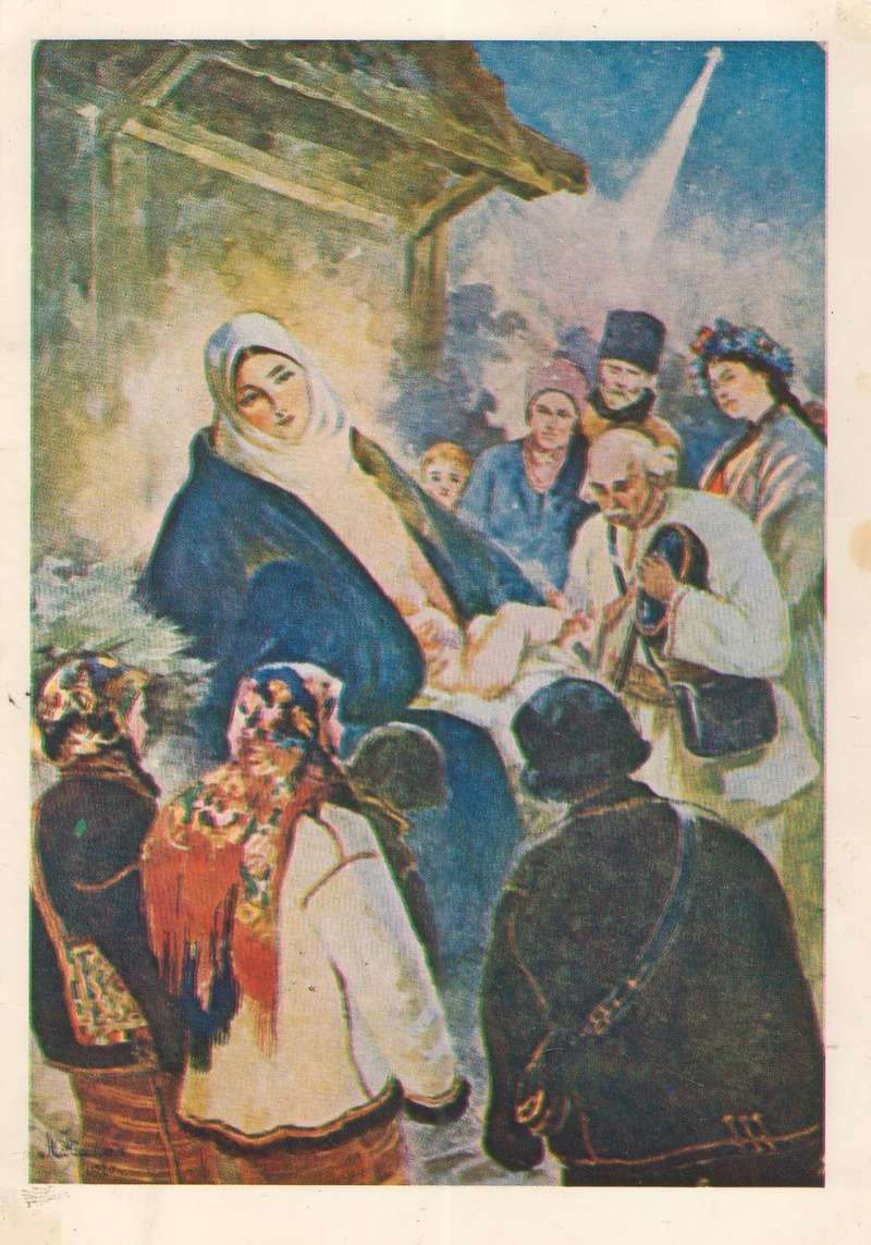 У музейній колекції зберігаються чотири листівки з репродукціями творів Миколи Івасюка. Сфокусуємо увагу на вітальній картці з аквареллю «Різдво Христове» (1920). Листівка побачила світ ймовірно у 70-90-х роках ХХ ст. у Лондоні. У багатофігурній композиції святкову сцену відтворено в академічному дусі. Персонажі подано в складних ракурсах з використанням елементів з буковинського народного побуту і звичаїв. Прикметно, що на листівці проглядається дата виконання та підпис автора.