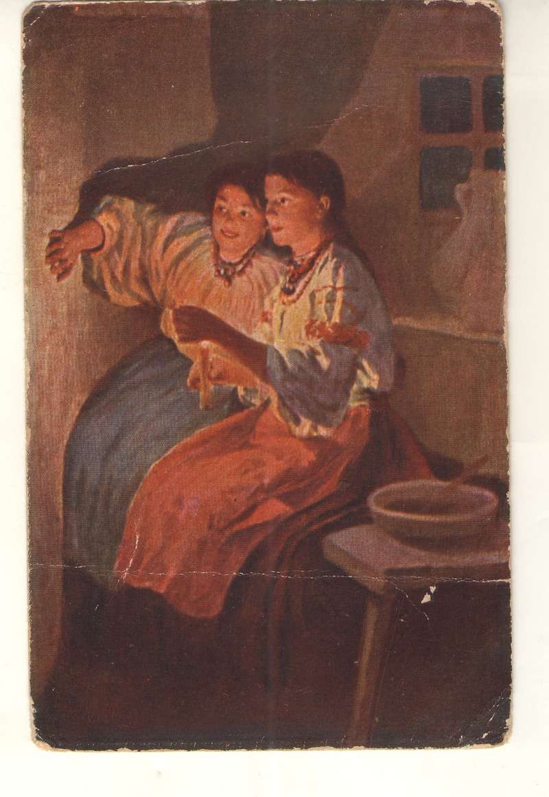 Серед численної колекції листівок з фондів ЧХМ зустрічаються два цікаві екземпляри з репродукцією відомої живописної композиції. Обидві художні листівки датуються початком ХХ століття. Місцем виготовлення однієї з листівок вказано Берлін. Зображення на листівці подано дещо узагальнено. Походження іншої поштівки остаточно не встановлено. Проте на ній досить виразно передається сюжет оригіналу. Композиційно все напрочуд органічно та живо відтворено, і одразу ніби поринаєш в те таїнство ворожіння (на воскові), де наче чутно тихий сміх двох святково вбраних молодих дівчат, що здивовано вдивляються в химерні тіні та контури на стіні, прагнучи відгадати свою долю. Мерехтливе полум’я свічки, мінливе світло на ніжних дівочих обличчях, теплі сутінки хати і синя ніч за вікном створюють неповторну казкову атмосферу.