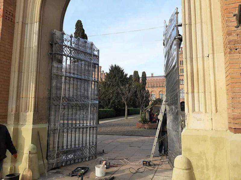 Сьогодні робітники зняли тимчасову браму при вході до університету, а замість неї встановили відреставровані автентичні ворота.