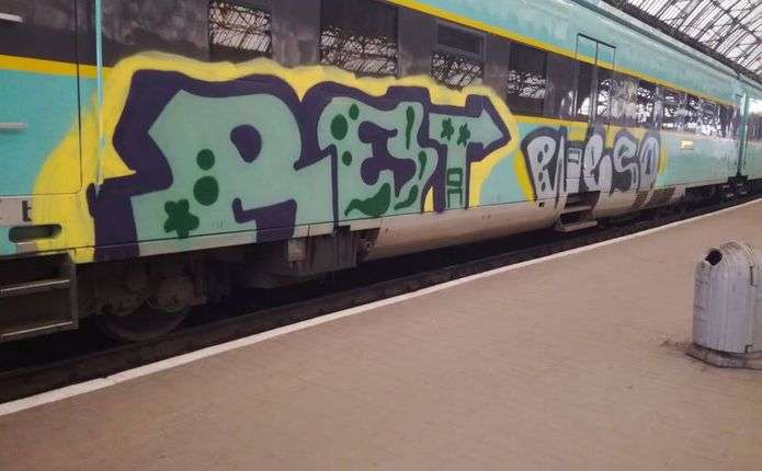 Додали клопоту залізничникам та зіпсували настрій пасажирам невідомі особи, які розмалювали аерозольними фарбами вагони регіонального та приміського поїздів Львівської регіональної філії.