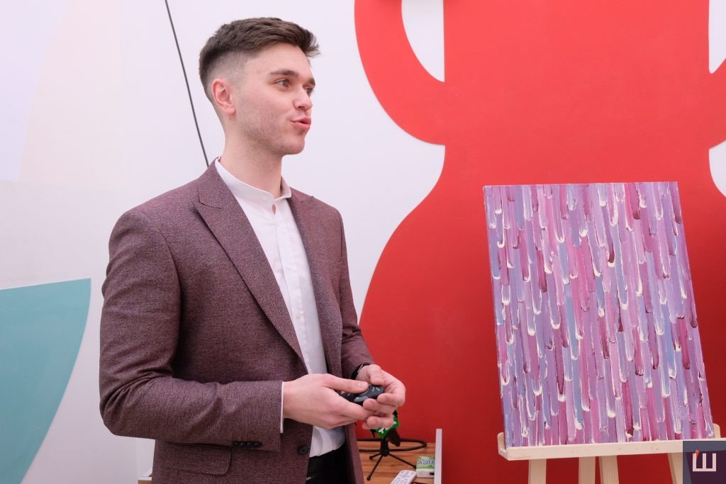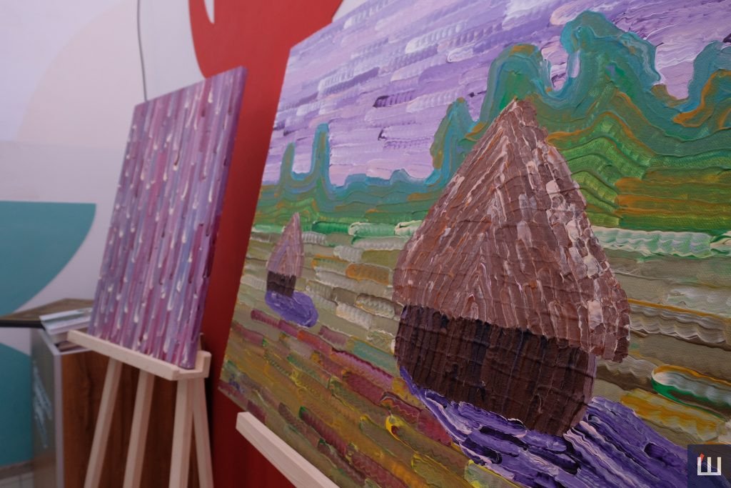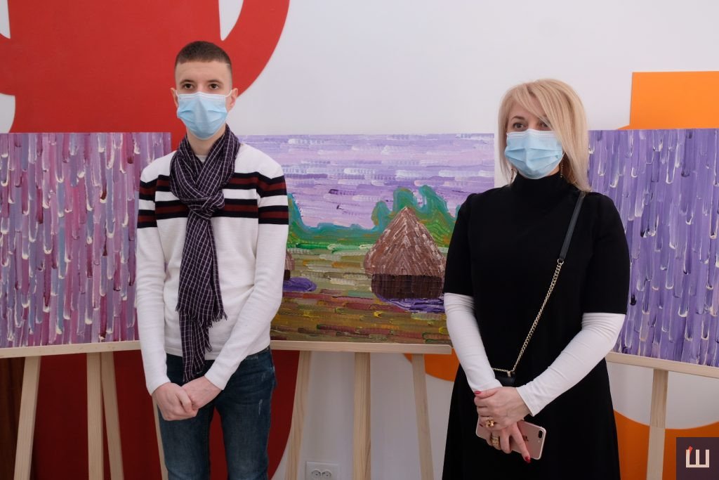 «Ця колекція картин вибрана під дизайн центру, щоб вписувалося в інтер’єр, у кольори. Тут представлені картини 2017, 2019 і 2020-го років. Надихайтеся», – сказала мати художника Альона Гулько.