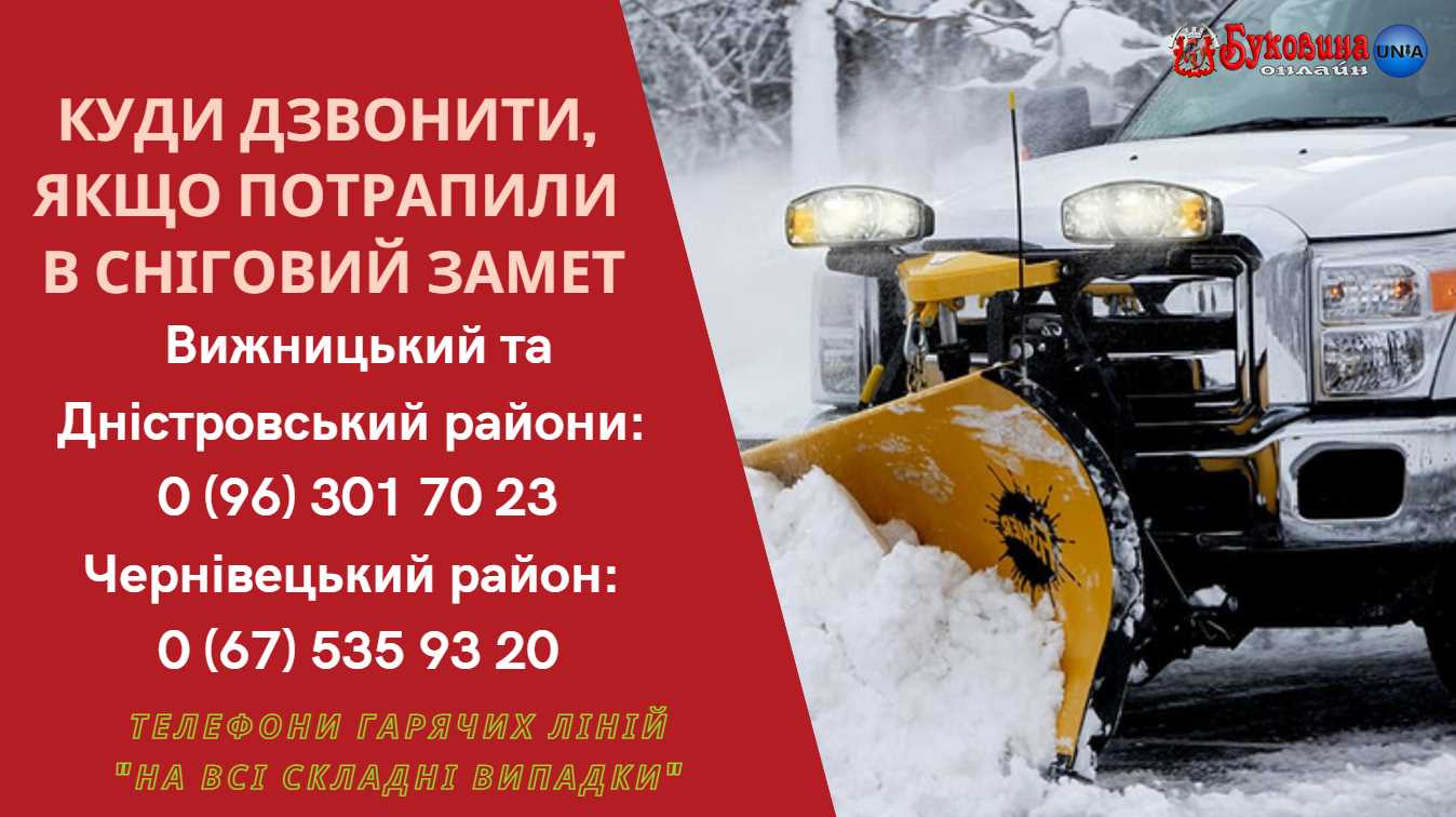 Буковинцям нагадали телефони “гарячих” ліній, на які вони можуть телефонувати, якщо потрапили в сніговий замет.
