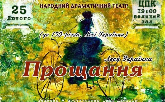У рамках відзначення 150 років з дня народження Лесі Українки (Лариси Петрівни Косач-Квітки) – видатної української письменниці та громадського діяча, однієї з центральних постатей національної культури, в Центральному Палаці культури Чернівців відбудеться показ вистави «Прощання» у виконанні народного драматичного театру.