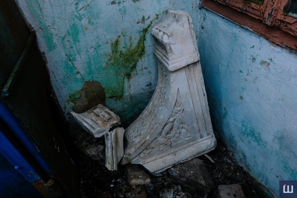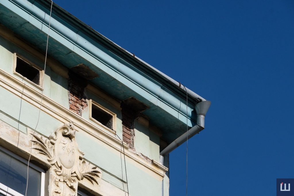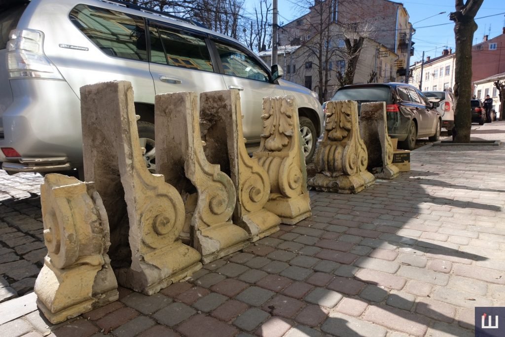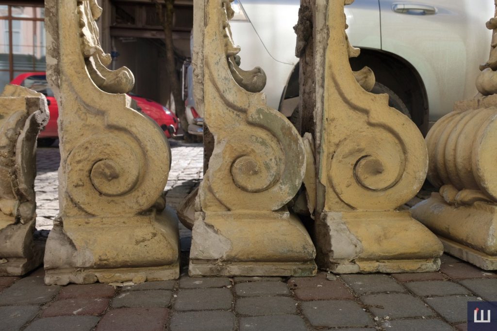 Така доля декоративних деталей із фасадів архітектурних будівель у центрі міста спіткала не один будинок. В управлінських компаніях є спеціальні приміщення, де зберігають декоративні частини екстер’єрів, які впали чи їх зняли.
