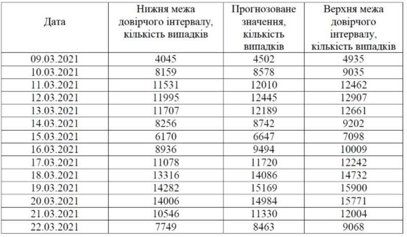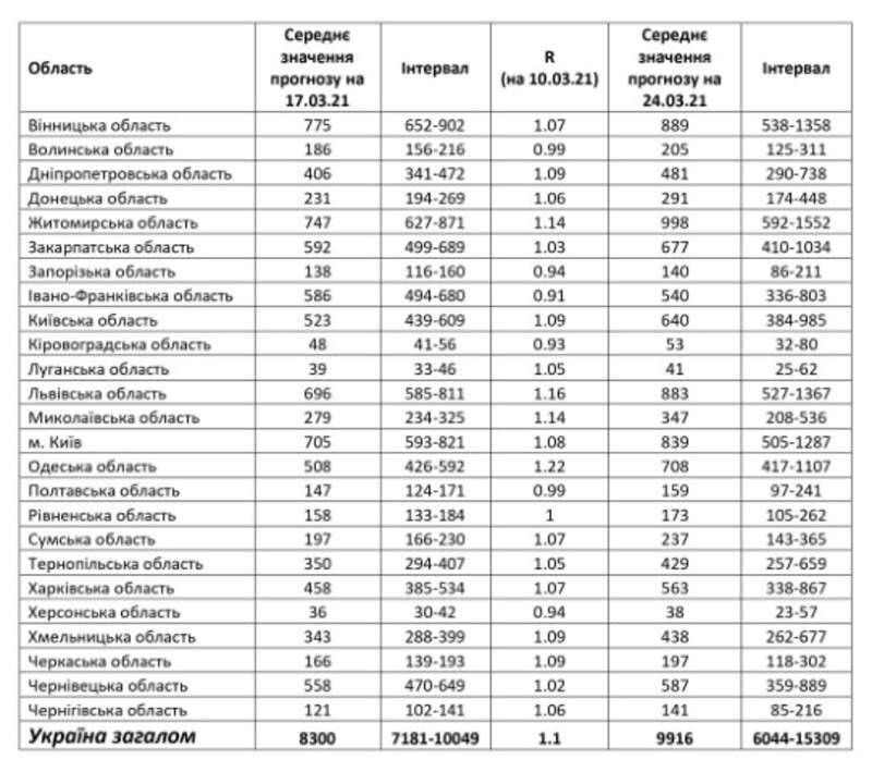 Про це стало відомо з прогнозу розвитку епідемії COVID-19 в Україні в період 11–24 березня 2021 року, опублікованого 10 березня на сайті НАН.