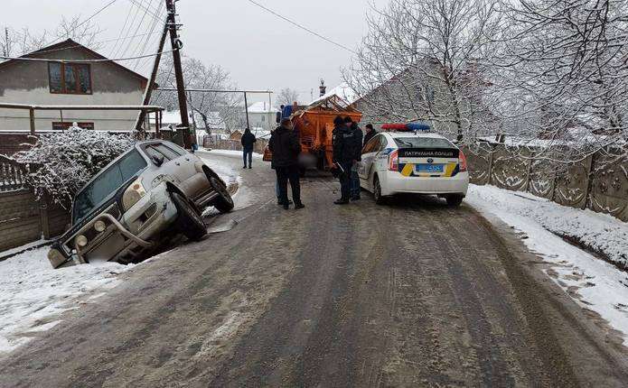 Не розминулися Джип та снігоприбиральна машина. Позашляховик з’їхав у кювет.