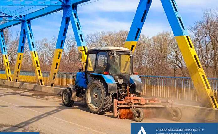 Цьогоріч зима видалась доволі морозною та сніжною. І щоб не допустити слизькості на автошляхах держзначення Чернівецької області, дорожники їх постійно підсипали протиожеледними матеріалами. Тепер же надворі потеплішало і сніг зійшов, але пісок залишився. Тож дорожники прибирають прибордюрну частину, узбіччя автошляхів від залишків піску.