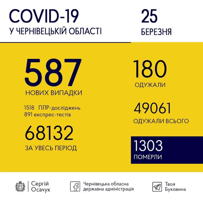 25 березня на Буковині виявили 587 нових випадків коронавірусу.