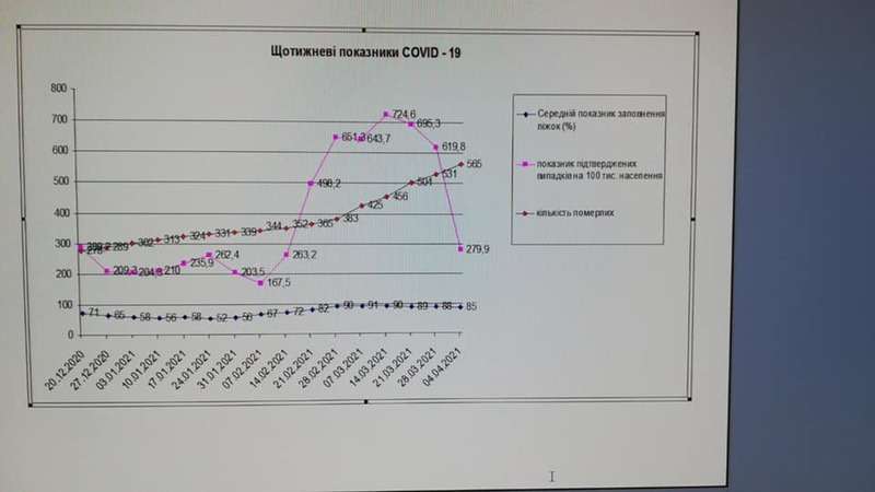 “Станом на сьогодні (5 квітня) маємо досить приємні новини щодо показника підтверджених нових випадків захворювання на коронавірус на 100 тис. населення в місті Чернівці за останній тиждень: крива на діаграмі пішла різко вниз і показник за останній тиждень складає 279, 9. Подібні показники ми мали станом на 24 січня (262,4) та 14 лютого (263,2), тобто до початку третьої хвилі епідемії, – йдеться у повідомленні.