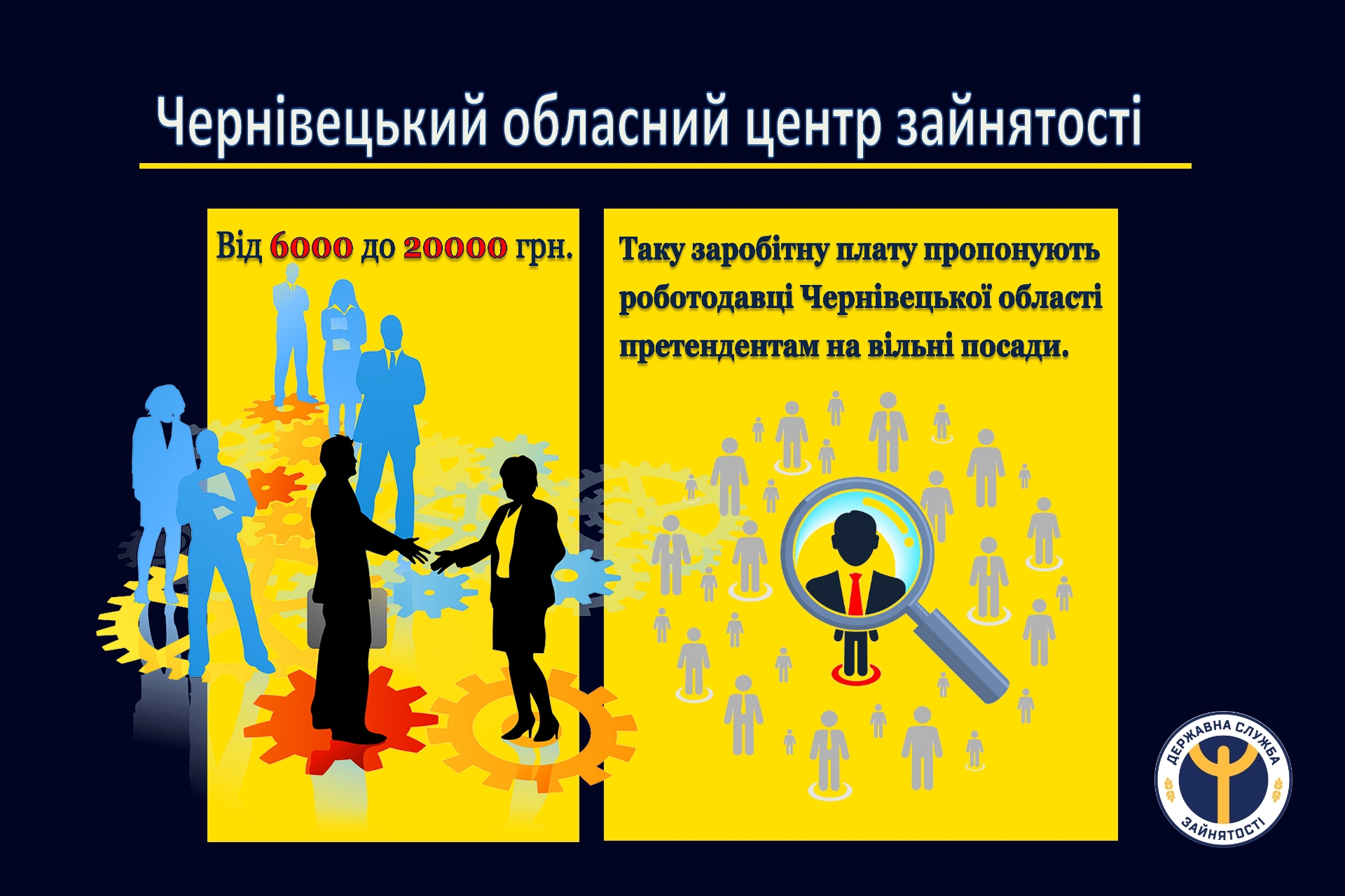 Серед актуальних вакансій – найбільше пропозицій роботи для швачок (24 вакансії), інспекторів (19 вакансій), менеджерів (18 вакансій), водіїв автотранспортних засобів (16 вакансій), електромонтажників-схемників (16 вакансій), охоронців (14 вакансій), лікарів (13 вакансій). Із заробітною платою 10 000 гривень є 27 вільних посад. Від 10064 до 13500 гривень – 42 пропозиції роботи, 15000 гривень пропонують начальнику цеха, виконавцю робіт (6 вакансій) та оператору верстатів з програмним керуванням. 20 тисяч гривень роботодавці Чернівецької області готові платити зварникам та торговельному агенту. Таких вакансій є 5. Зарплатня інших вільних посад – від 6000 до 9800 гривень.