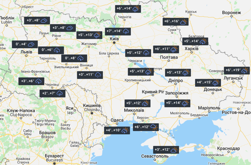 У Чернівцях у четвер – злива, вночі +2°, вдень +7°.