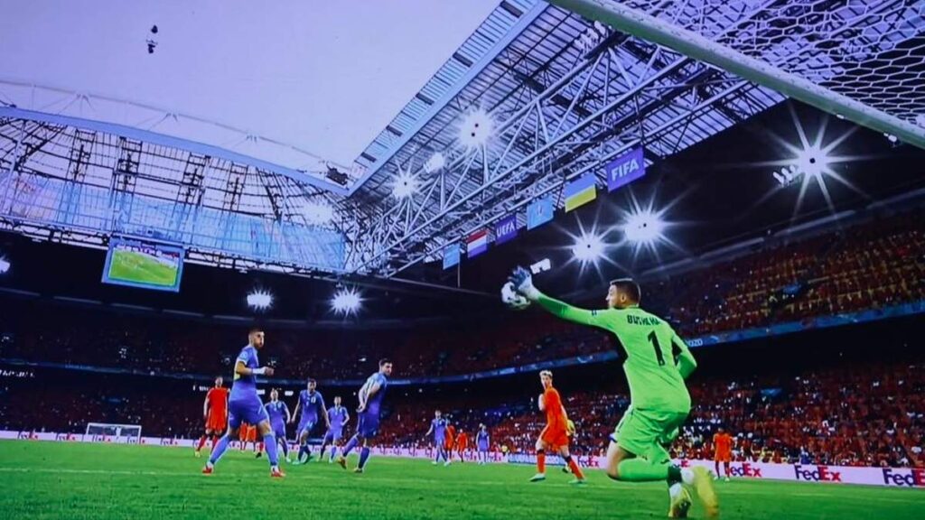 У другому таймі захист української збірної все ж не встояв. Миколенко не зумів перервати передачу на правого латераля нідерландців Дюмфріса. Той прострелив у штрафний майданчик, але Бущану вдалося перервати його. Проте опорний півзахисник Сидорчук не встигає за тепер уже колишнім гравцем Ліверпуля, капітаном збірної Нідерландів Джоржиньо Вейналдумом, який першим опинився на м’ячі та розстріляв ворота української збірної, вивівши вперед господарів поля.