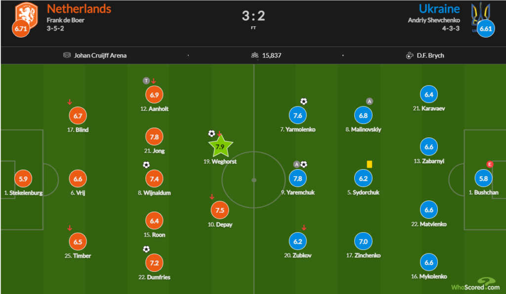 Оцінки за матч за версією аналітичного порталу WhoScored
