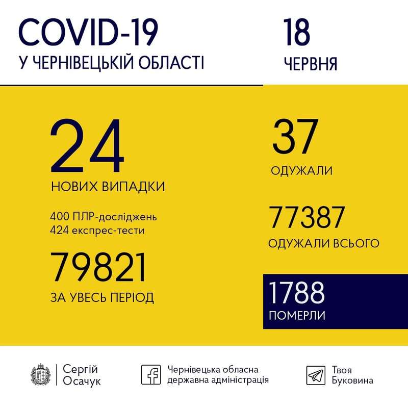 18 червня на Буковині виявили 24 нових випадки коронавірусу.