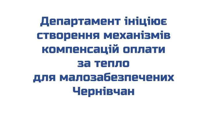 Департамент інфраструктури та благоустрою Чернівецької міської ради виступив ініціатором створення робочої групи для напрацювання механізмів компенсацій оплати за споживання теплової енергії, яка постачається комунальним підприємством “Чернівцітеплокомуненерго” для малозабезпечених верств населення. Про це повідомляють на офіційній facebook-сторінці департаменту.