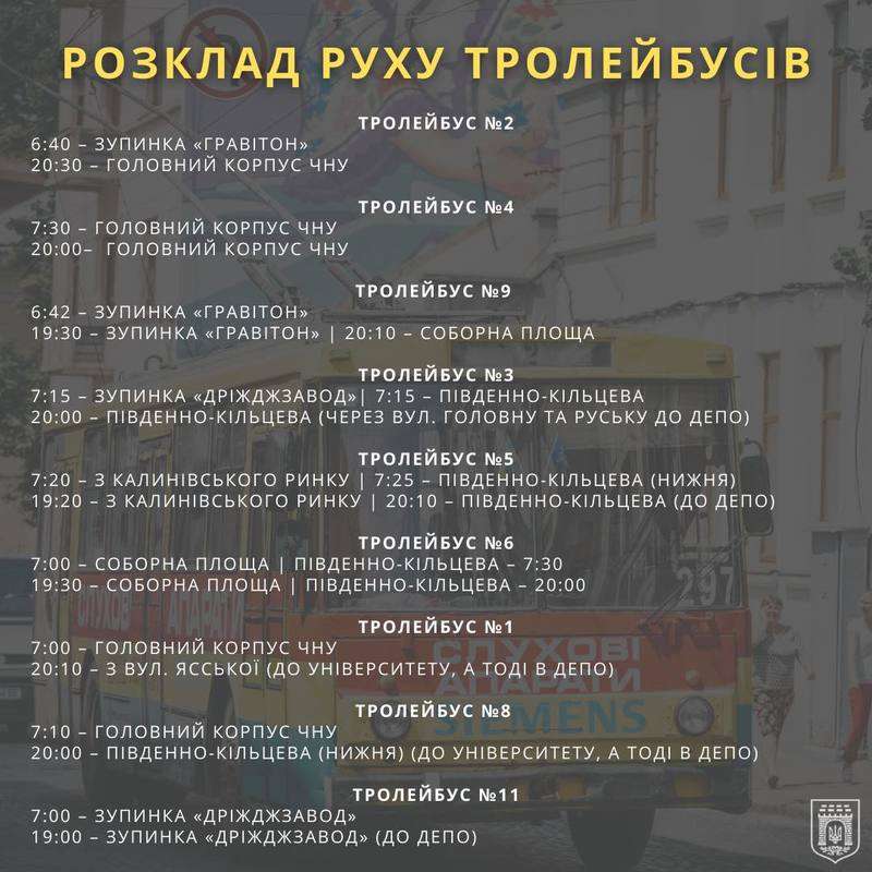 У Чернівцях буде змінено розклад руху тролейбусів