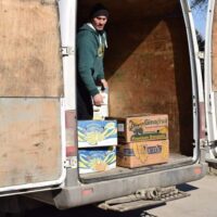 Транспортування гуманітарної допомоги до міста Вишгород забезпечують жителі села Грубна спільно із мешканцем Вишгорода – Євгеном.