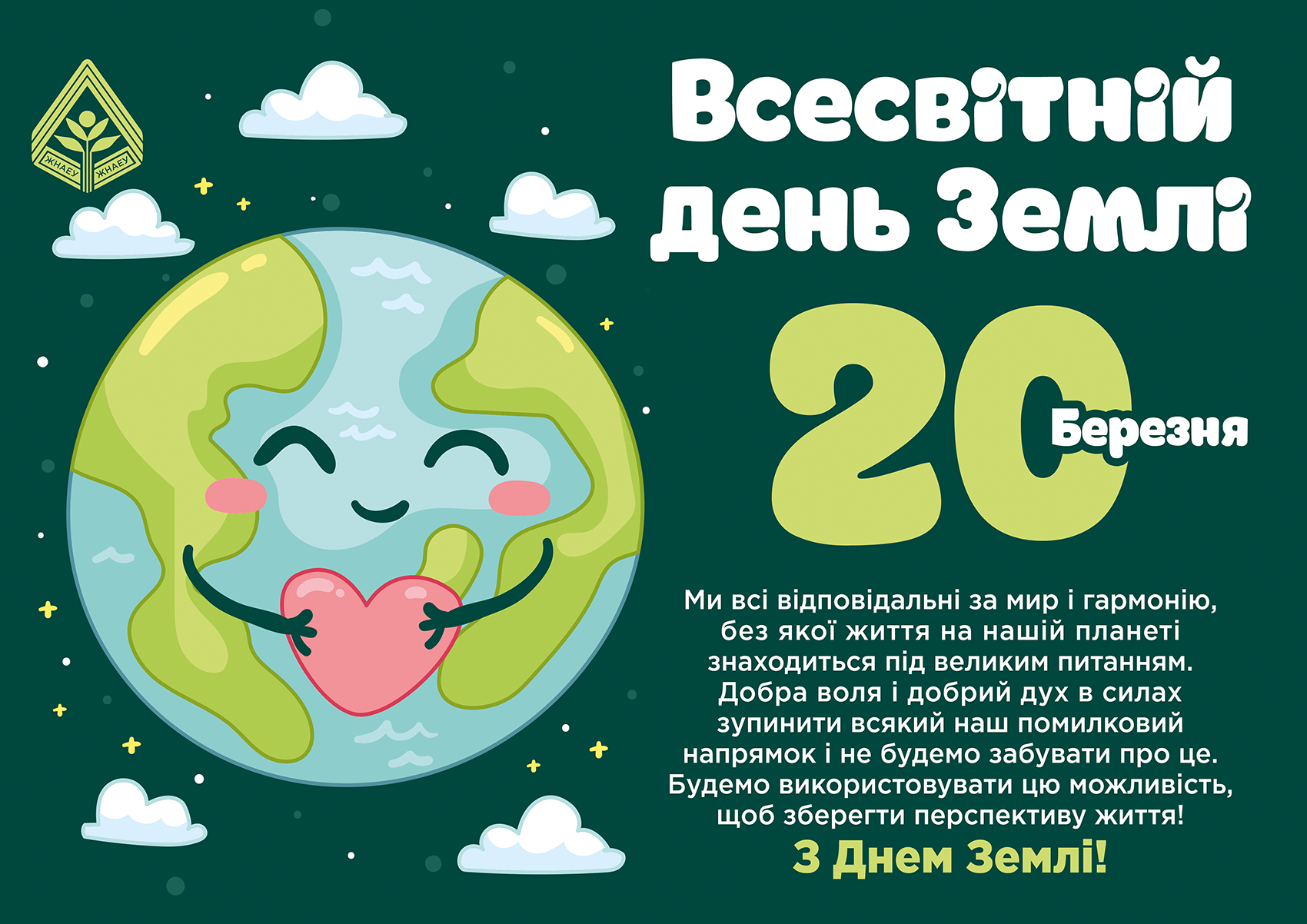 Ми всі відповідальні за мир і гармонію, без якої життя на нашій планеті знаходиться під великим питанням. Добра воля і добрий дух в силах зупинити всякий наш помилковий напрямок і не будемо забувати про це. Будемо використовувати цю можливість, щоб зберегти перспективу життя! З Днем Землі!