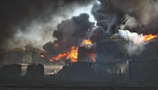 «Станом на 6:00 25 березня спостерігалося горіння залишків нафтопродуктів у межах обвалування резервуарного парку нафтобази. Загрози поширення немає», — повідомили в ДСНС.