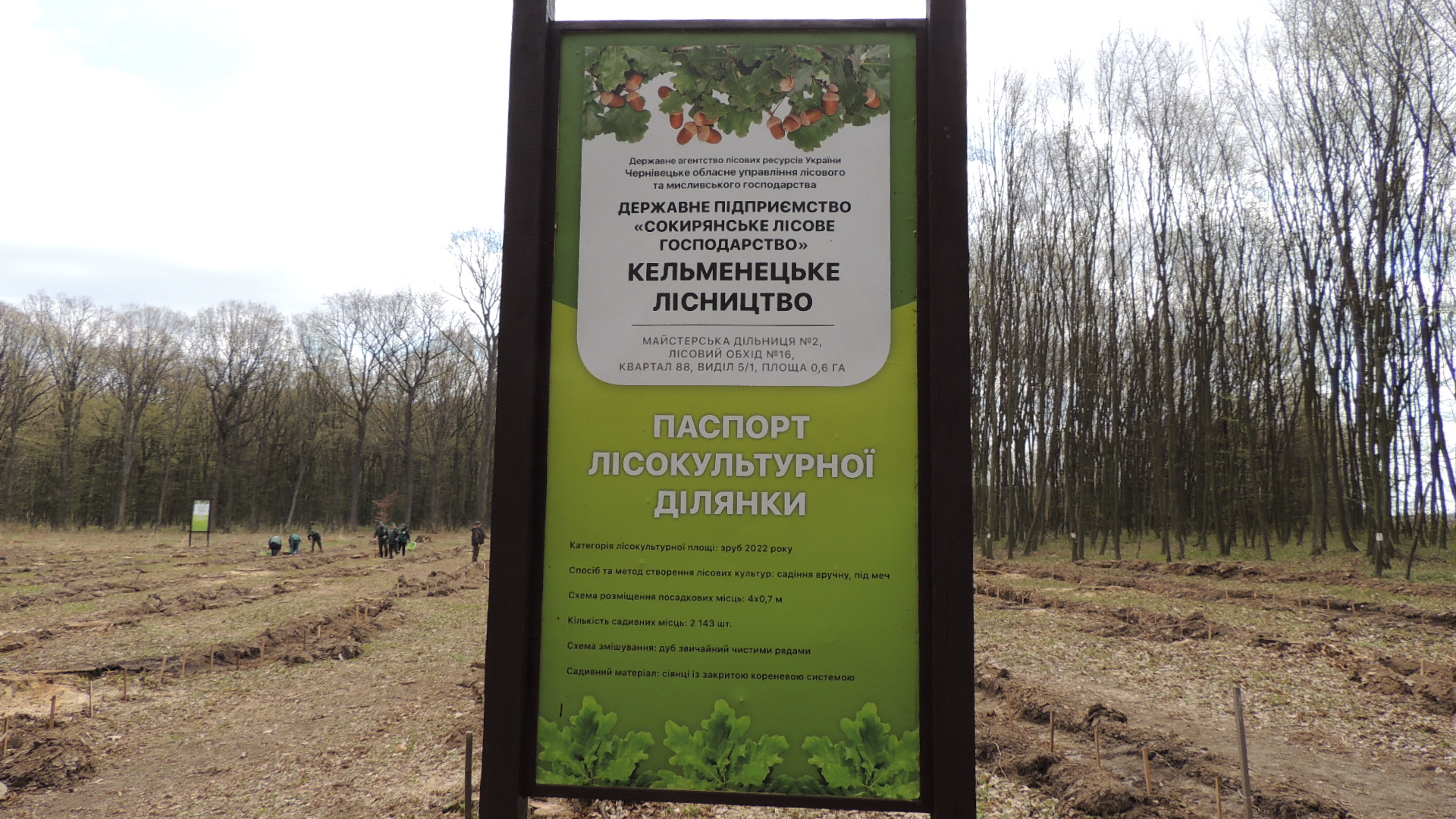 11 квітня 2022 року, в Кельменецькому лісництві ДП «Сокирянське лісове господарство», лісівники та вихованці учнівського лісництва ОЗ «Романковецький ліцей ім. К.Ф. Поповича», спільно з головою Дністровської районної ради – Олександром Янчаком та головою Кельменецької територіальної громади – Богданом Олійником, долучилися до акції в рамках програми Президента України «Зелена країна» – «Створюємо ліси разом».