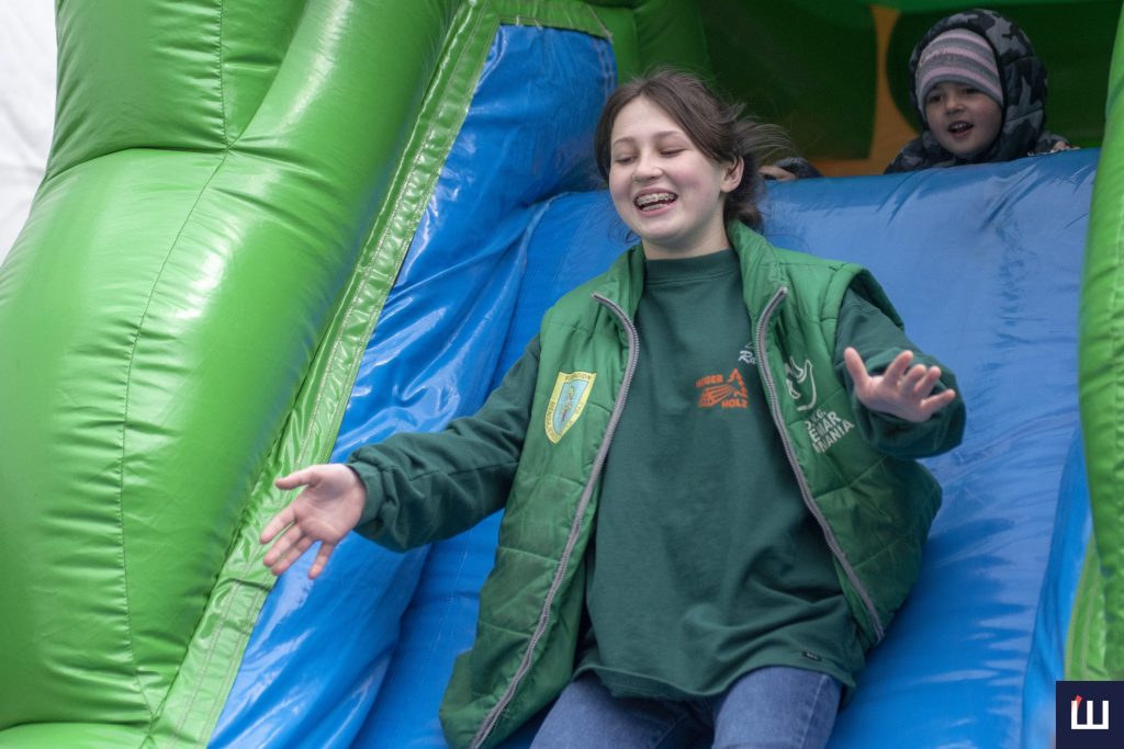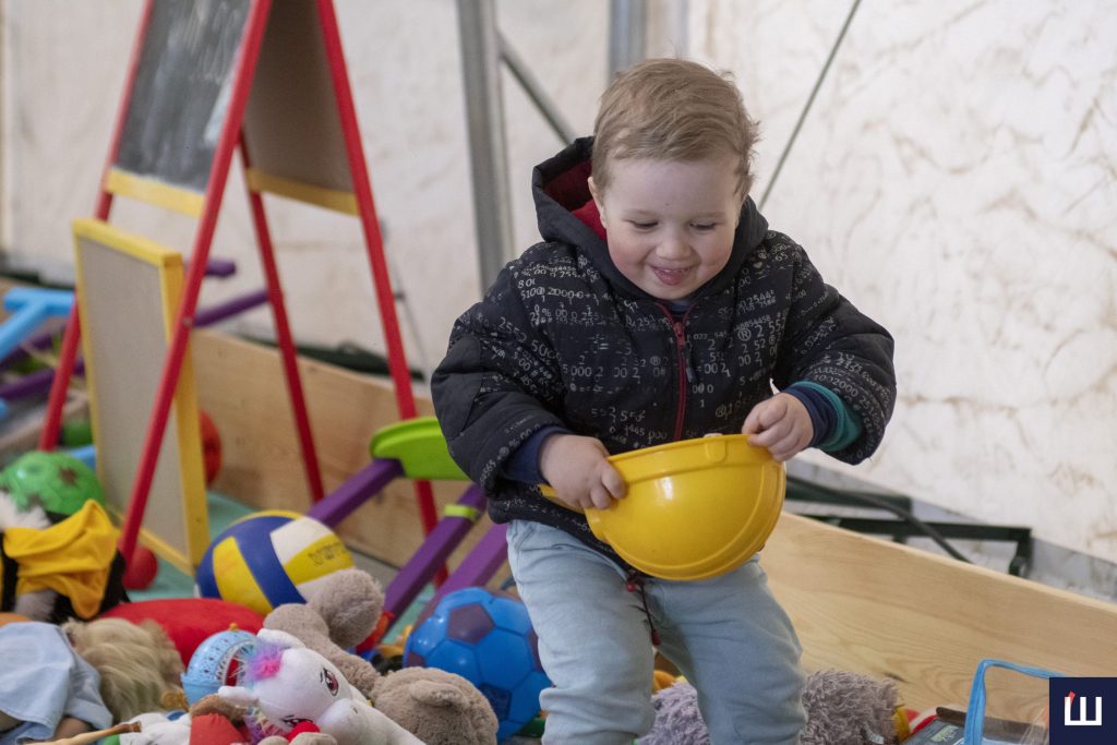Також у таборі є спеціальна дитяча зона. Тут волонтери організовують для діток ігри та розваги, разом із малечею спускаються з гірки чи стрибають на батуті.
