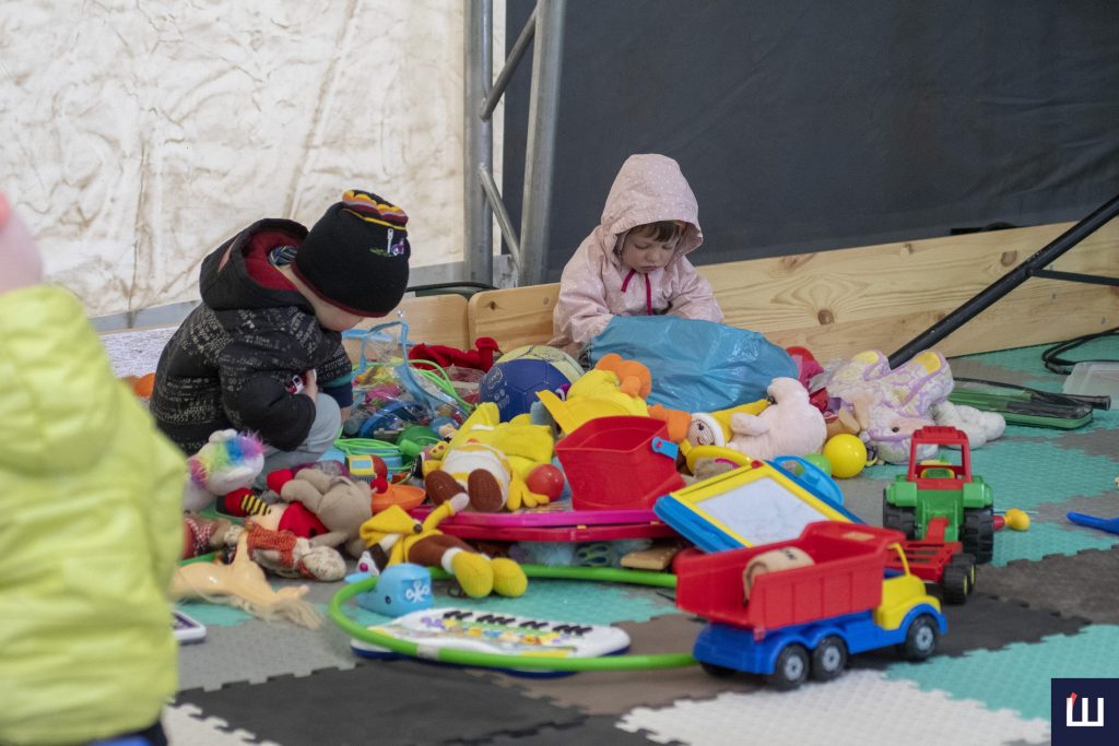 Також тут надають безкоштовно одяг, а ще продуктові набори для вимушених переселенців. Є і павільйон, де раз у тиждень організовують різні соціальні послуги, як-от стрижки, або роздають іграшки дітям.