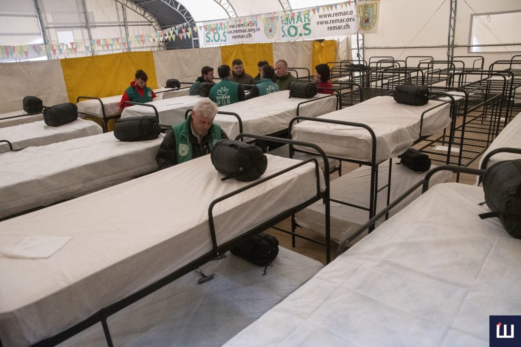 В одному з наметів розгорнули 50 ліжко-місць. Якщо буде необхідність, нічліг можуть надавати 100 людям. Проте попереджають, що ванної кімнати тут немає.