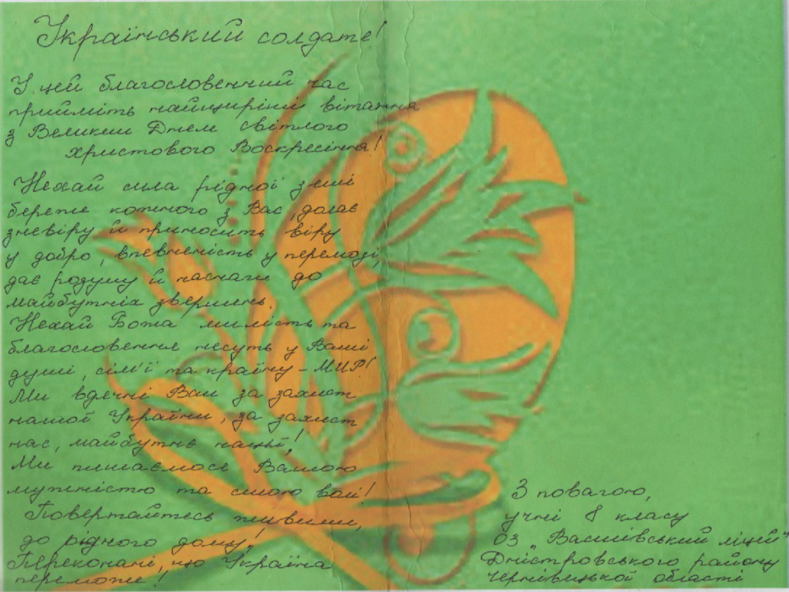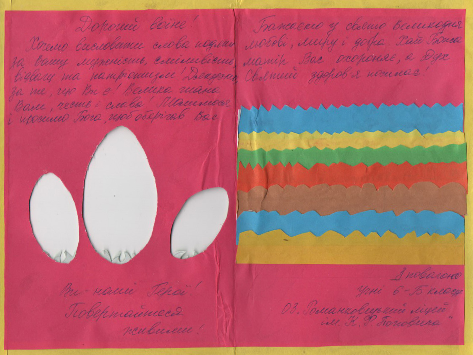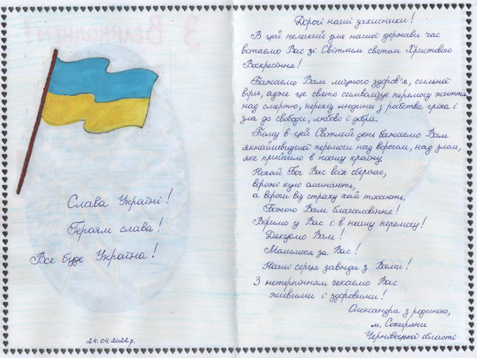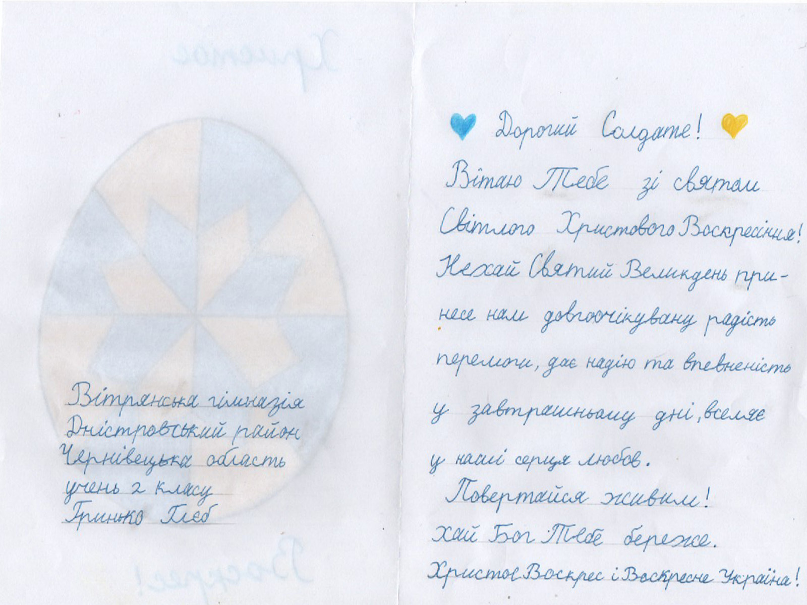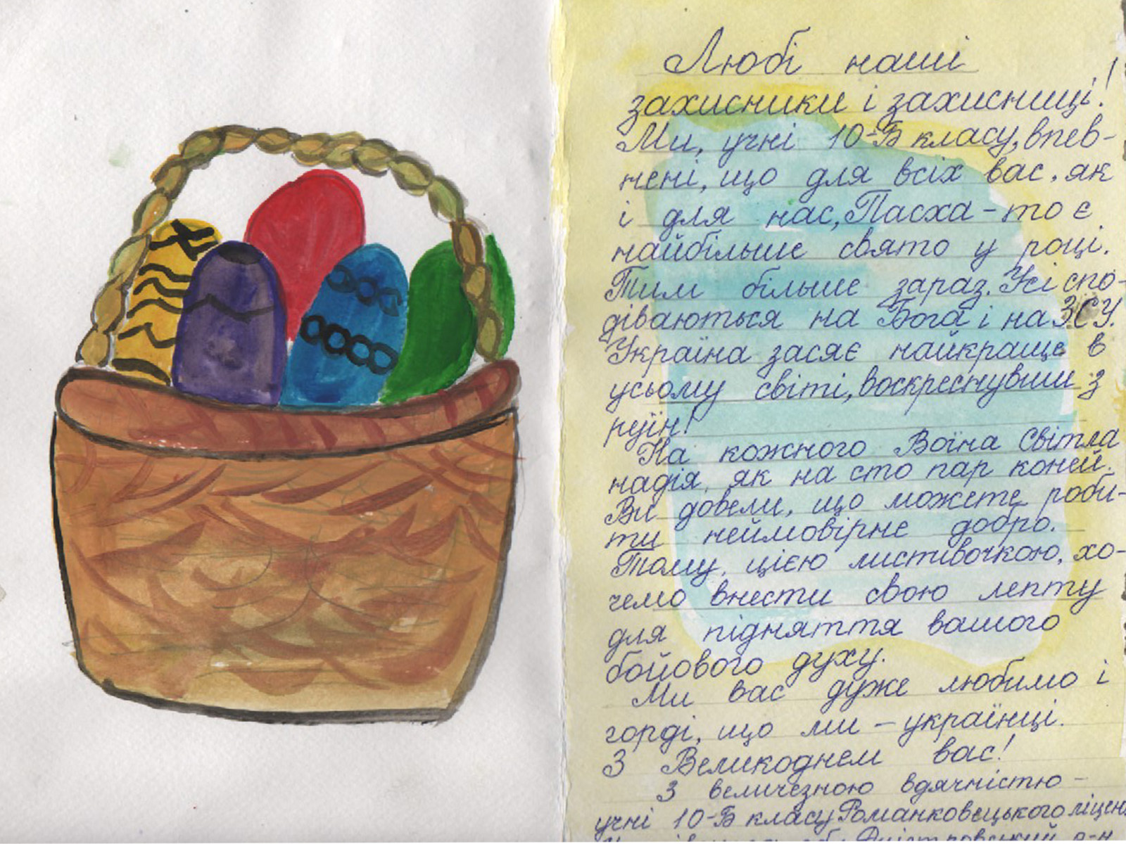 «Великодні листівки від дітей Сокирянщини – Захисникам України» – під таким гаслом серед учнів закладів загальної середньої освіти громади відбулась творча акція, аби підтримати мужніх воїнів, які тримають оборону та захищають нас від російської навали.