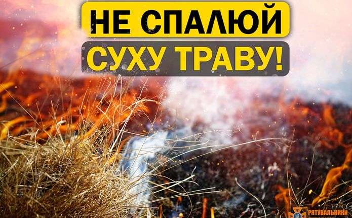 Фахівці Служби порятунку вкотре закликають громадян не провокувати пожеж на відкритих територіях та наголошують, що за спалювання сухої трави передбачена адміністративна, а в окремих випадках й кримінальна відповідальність”, – йдеться у повідомленні.