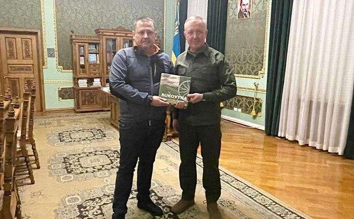 Голова Чернівецької обласної війської адміністрації подарував меру Дніпра альбом про Чернівецьку область як жест прихильності і символ віри у нашу Перемогу.