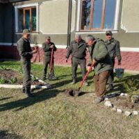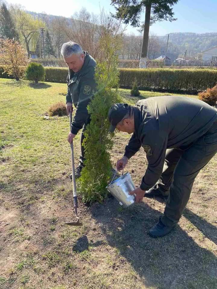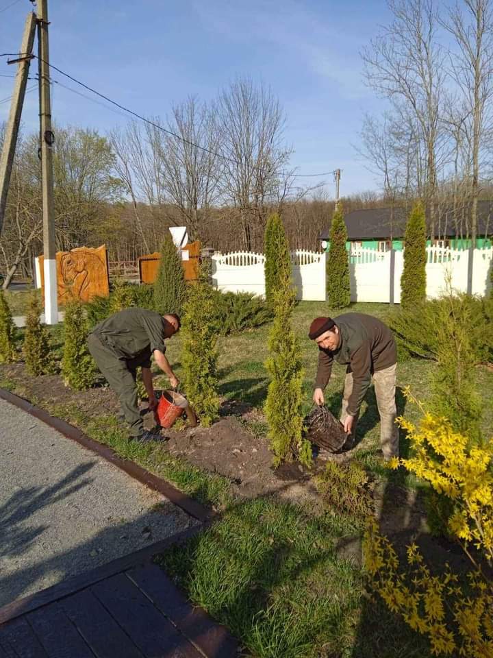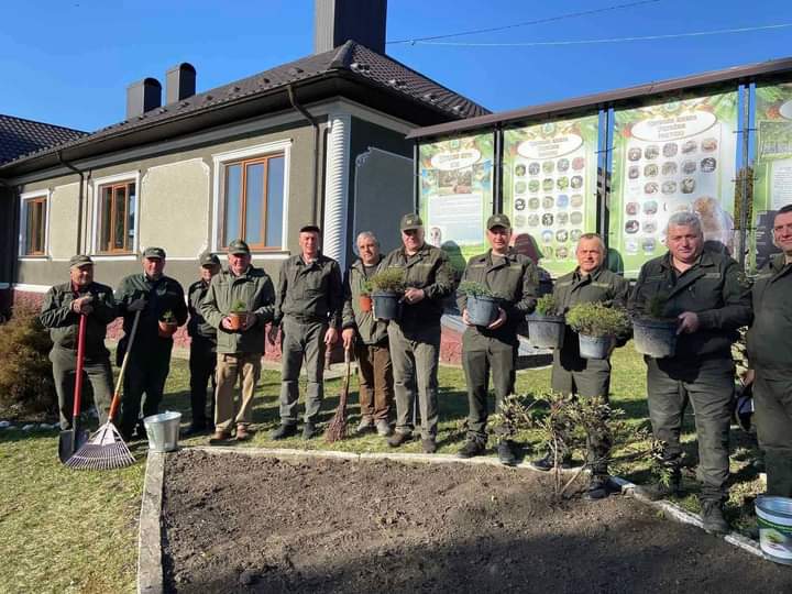 Фахівці Рухотинського лісництва теж провели озеленення садиби підрозділу, там подвір’я прикрасили не лише туями та ялівцями, а ще соснами та кипарисами.