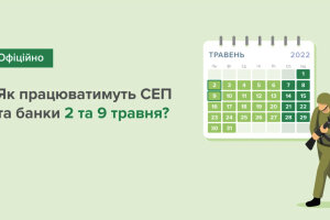 Міжбанківські перекази через систему СЕП здійснюватимуться із 7 до 9 травня 2022 року включно датою банківського дня 9 травня 2022 року.