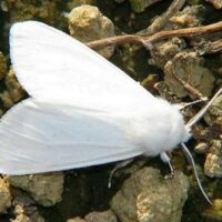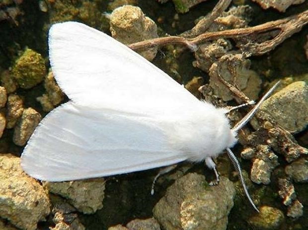 Метелик з розмахом крил 40-50 мм; крила білосніжні з шовковистим полиском; тіло вкрите густими білими волосинками; вусики чорні з білим нальотом, у самки ниткоподібні, у самця перисті; ноги світложовті. Яйце розміром 0,6-0,7 мм, кулясте, гладеньке, блакитнувате, іноді жовтувате. Гусениці молодших віків світложовті; голова, грудний щиток і грудні ноги чорні; вздовж спини два ряди чорних або світложовтих бородавок, по боках – чотири ряди; на кожній бородавці чорні й білі волосинки. Гусениця, яка завершила живлення, – 30-40 мм завдовжки, зі спинного боку оксамитовокоричнева, по боках тіла – жовті смуги з оранжевими бородавками, на яких розміщені тонкі світлі волосинки й двітри волосинки чорного кольору; голова і ноги чорні. Лялечка – 10-15 мм, спочатку лимонножовта, з часом – темнокоричнева, у темному пухнастому коконі сіруватого кольору.