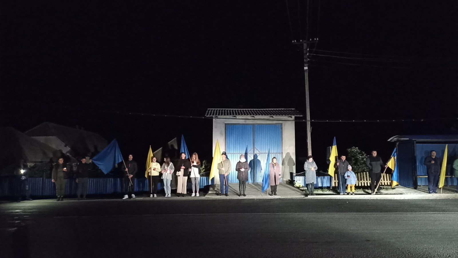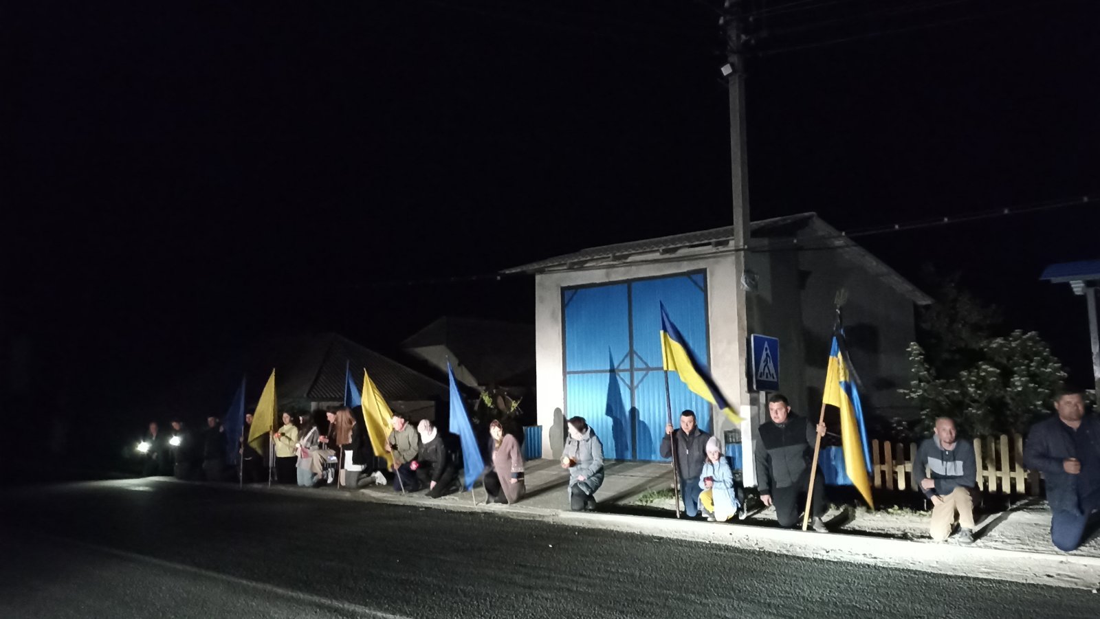 Жителі Сокирянщини разом із Сокирянським міським головою Василем Козаком, секретарем міської ради Любов’ю Степаненко, заступниками міського голови Іваном Гангалом та Оксаною Бабій, старостами населених пунктів громади утворили живий ланцюг та зустріли тіло захисника стоячи на колінах.