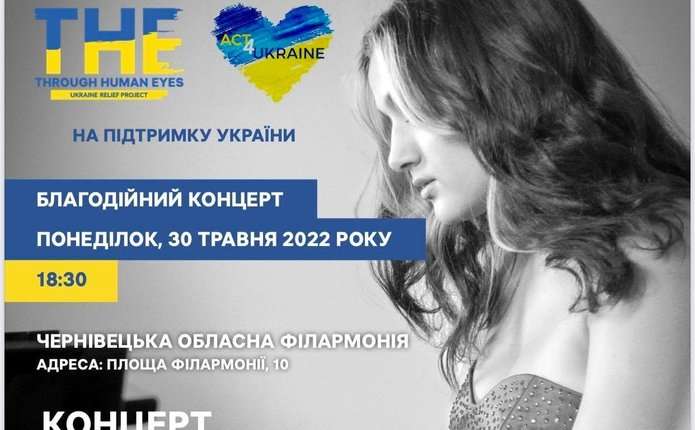 З початку нападу рф на Україну піаністка допомагає українським біженцям. Для цього вона заснувала організацію «Through Human Eyes». Гратиме у Чернівцях, аби підтримати нашу державу у цей складний час, повідомляє Чернівецька ОВА.