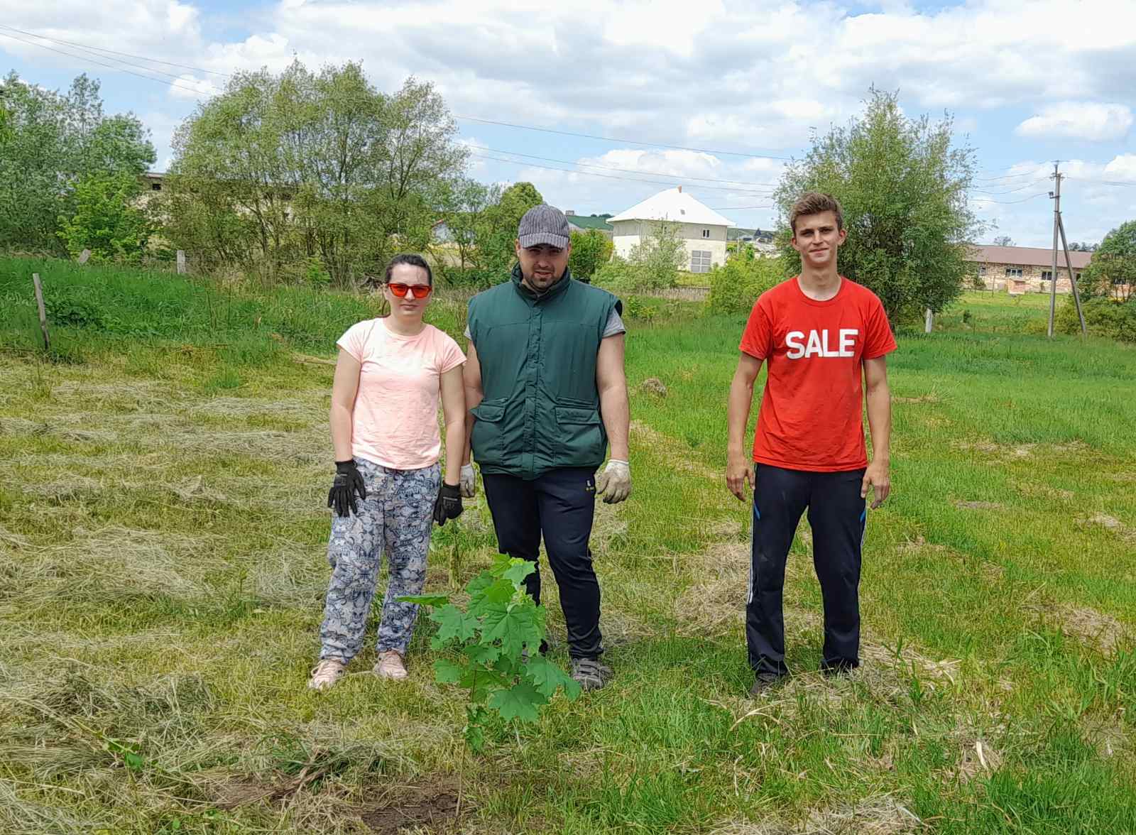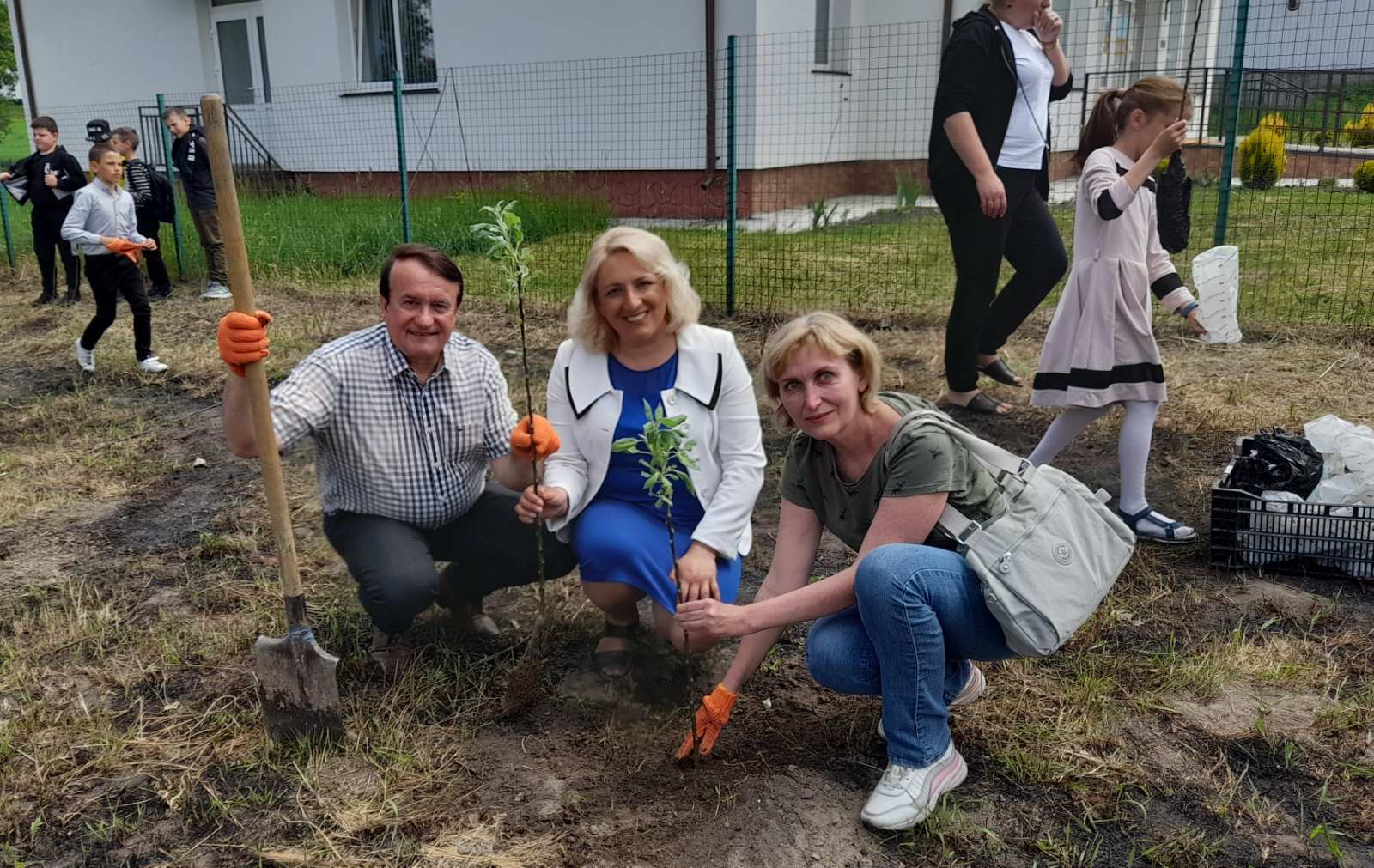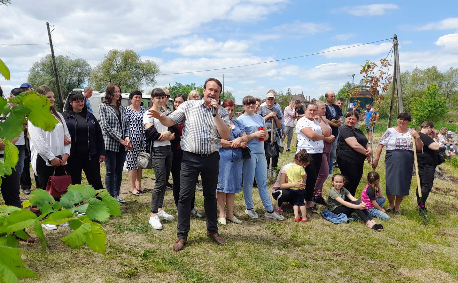 Атмосфера заходу дуже щира: висаджують деревця сім’ями, доєдналися учні місцевої школи на чолі з вчителями та директором МИКОЛОЮ БОДНАРЮКОМ, на акцію приїхали старости та переселенці з інших сіл громади. Люди знайомляться, підбадьорюють одне одного словами віри в перемогу!