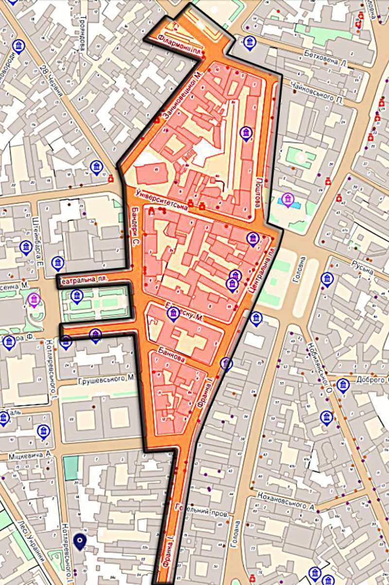 - частини вулиці Адама Міцкевича (від вулиці Франка до вулиці Бандери),