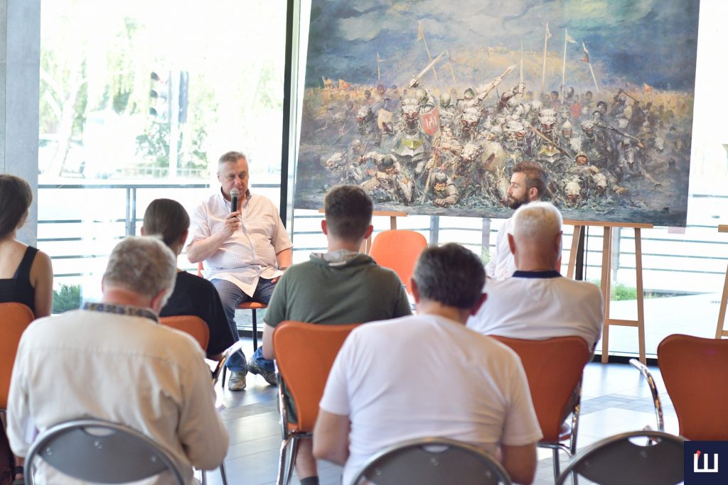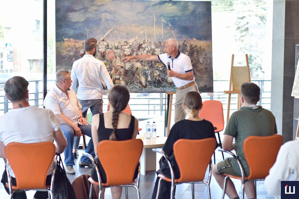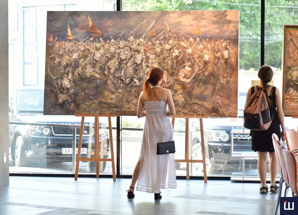 «Ми – члени Студії військово-історичного мистецтва України, працюємо спільно над створенням цих робіт, тож вирішили відтворити історію нашої держави у військових походах, починаючи з подвигів та походів князя Святослава, Данила Галицького. Тобто всі переможні події, які відбувалися на теренах нашої держави. А також там, де ми забезпечували перемогу. Тож ця виставка – підсумок 20-річної роботи. Цікаво те, що починалося створення цього мистецького проєкту з відтворення Хотинської битви», — розповів художник.