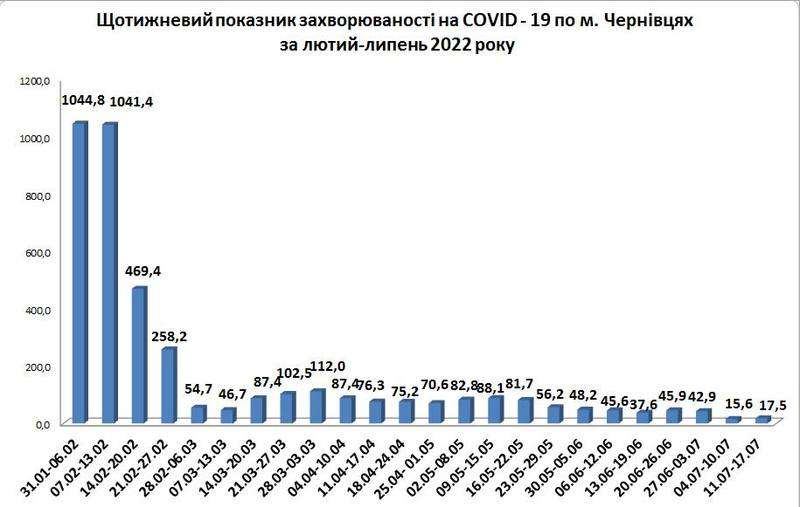 Упродовж 11-17 липня 2022 року у Чернівцях було зареєстровано 46 нових випадків захворювання на коронавірус.