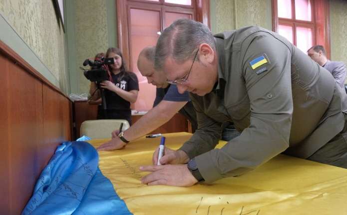 Відтак 10-метровий прапор, підписаний українцями із різних куточків нашої держави, передадуть до Чернівецького обласного краєзнавчого музею.