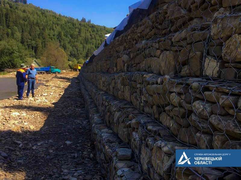 Конструкцію зводять на висоті 833 м над рівнем моря. Загальна протяжність укріплювальної споруди – 126 метрів, а висота стінки сягатиме 4,5 метрів. Дорожники вже звели 62 габіонних матраци та 251 ящик. Роботи продовжуються.
