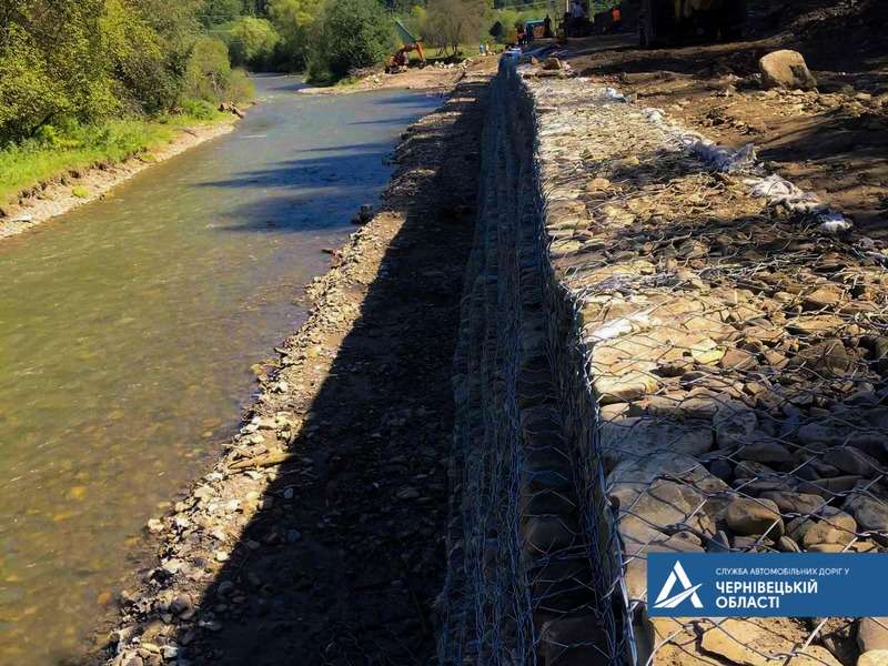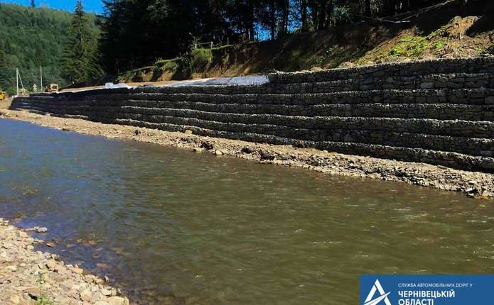 У селі Руська Вижницького району укріплюють гірську дорогу підпірною стінкою з габіонів. Штучну споруду облаштовують на відрізку, де дорога прокладена вздовж річки Сучава. Йдеться про ділянку дорогу Т-26-01 Чернівці – Вашківці – Путила – КПП «Руська», км 138+130 – км 138+430. Аварійно-відновлювальні роботи виконуються на місці, де було пошкоджено берегоукріплення. Про це повідомляє Служба автомобільних доріг у Чернівецькій області.